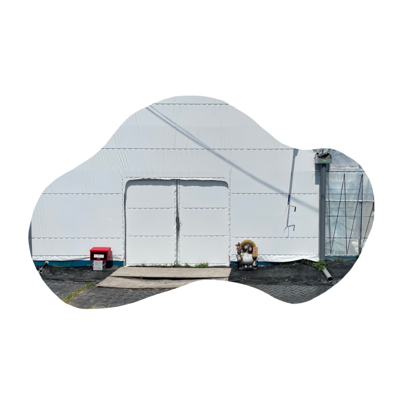ハウスの入口では、たぬきの置物が皆さまをお迎えしています